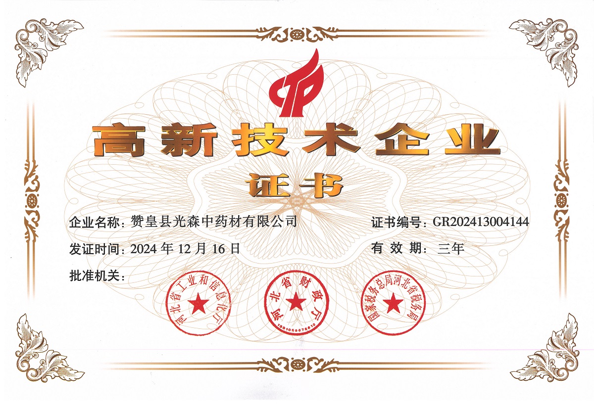 赞皇县光森中药材有限公司注册于2011年,是一家生产、加工和销售中药材的企业,主要经营酸枣仁药材。公司早在2008年是农户和零售商合作的模式,2012年建设酸枣仁基地,规模化发展,公司客户也从原有的零售商扩展为药企及饮片厂,严格把控质量。加工技术和规模驰名国内外,并享有“世界枣仁看中国,中国枣仁看孤山”的美誉。发展至今,公司已有酸枣仁种植基地200余亩,初加工厂房720余平方米,仓储车间6间,占地10余亩,加工机械酸枣仁筛选机4台,酸枣仁色选机1台,公司已经成为基地化管理、规范化种植、标准化初加工、品牌化运营为一体的中药材企业。为市场供应了一批又一批优质地道的酸枣仁。
